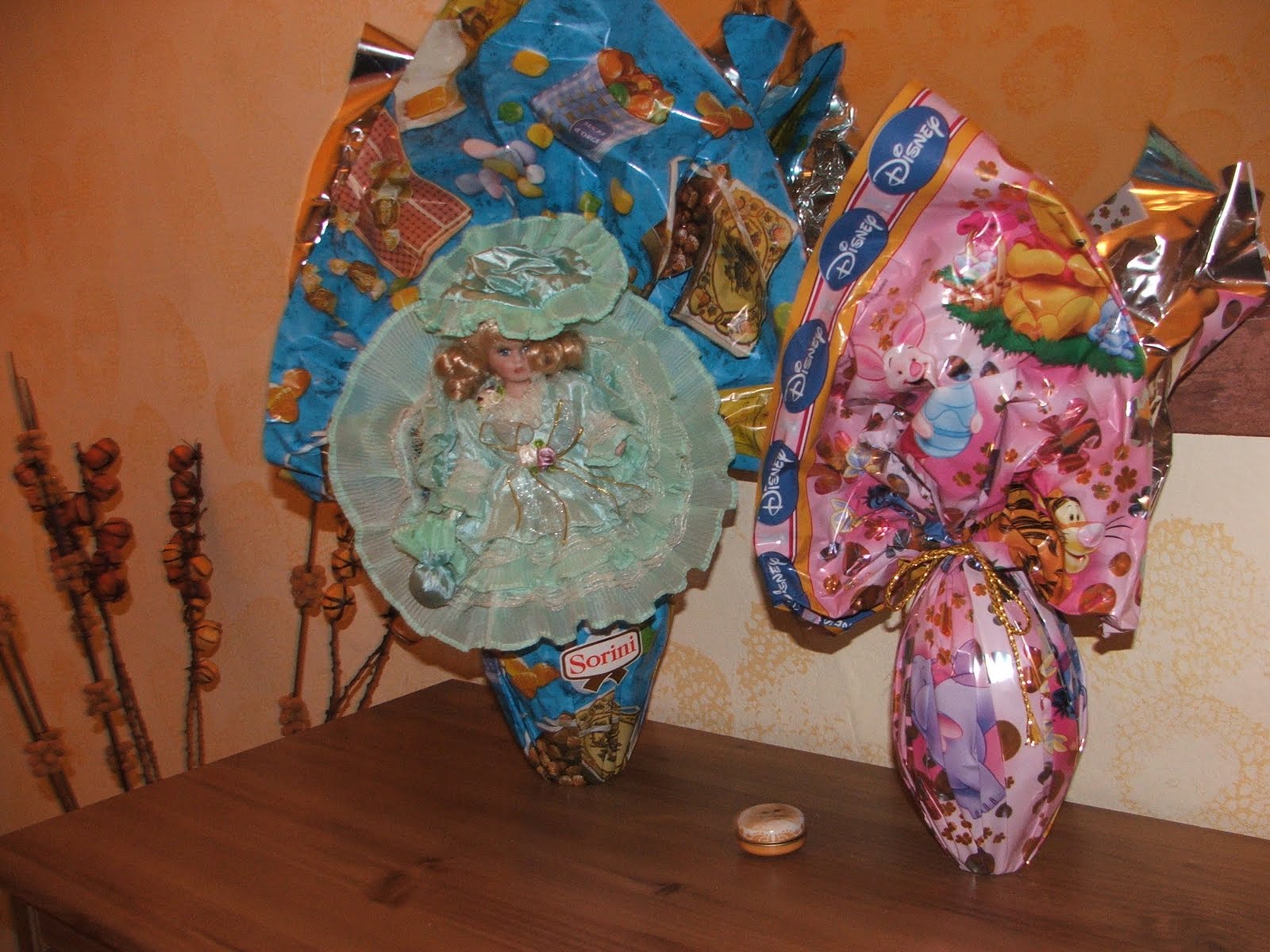 Instead of Easter baskets, it is tradition in Italy to have these cellophane wrapped eggs.